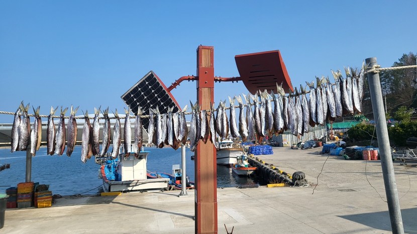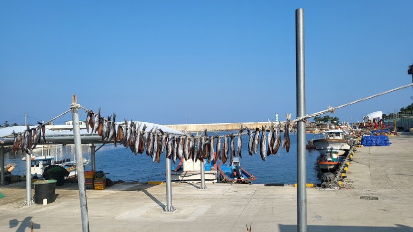 포항 대진항에 과메기가 널려 있어요.