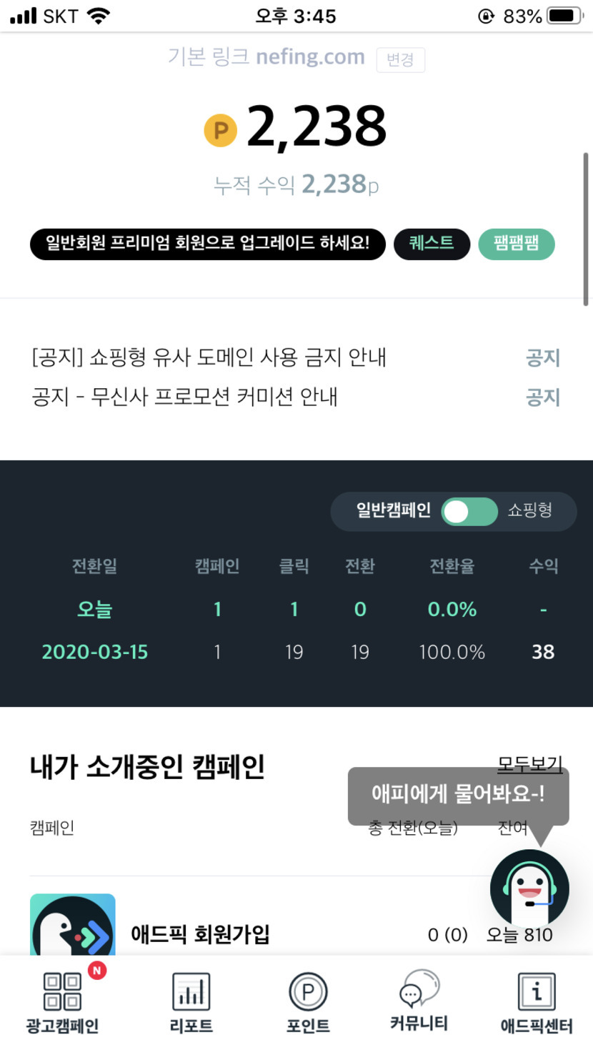 20.03.16 183 읽음 돈버는앱 애드픽 제우ㅎㅎ 구독하기 0 5 콘텐츠의 수익 24 https://nefing.com/1e61117애드픽 어제 시직햇는데 2000원 벌엇습니다 더 열심히해야겟네요 링크로 들어가서 회원가입 하시면 됩니다 5 0 / 300 입력