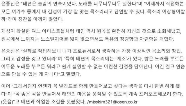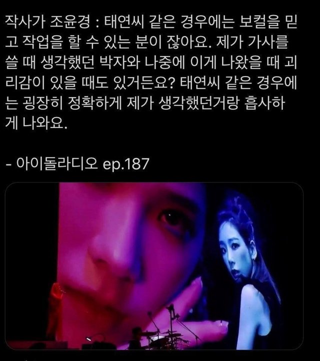 19.10.27 279 읽음 곡해석 능력이 뛰어난거 같은 태연.jpg 제임스멕인보이 구독하기 0 0 콘텐츠의 수익 0 태연이 보컬로써 기량도 뛰어나고 노래도 잘부르지만작곡,작사가들이 완성한 곡을 정확히 캐치하고 해석해서 부르는게 보컬로써 정말 중요한 역량인데 그걸 잘하는듯개인적으로 맨위에 제이큐 작사가님이 가사쓴 'blue'곡 들어보면 느껴짐! 0 0 / 300 입력