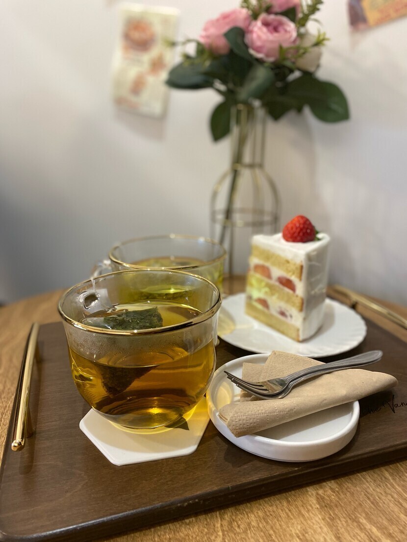 딸기케이크와 페퍼민트티