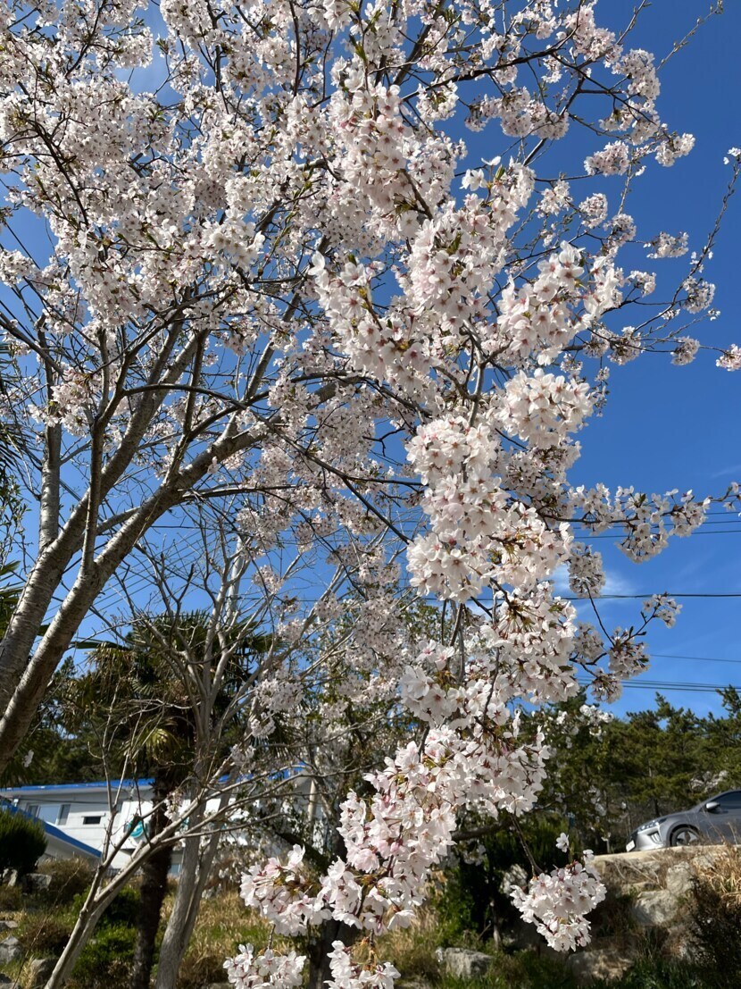 공원에 폭포처럼 흘러내릴것 같은 벚꽃이 이뿌다