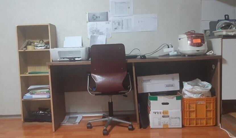 남편은 그 옆 책상(아래 사진)에서 업무 보고있어요