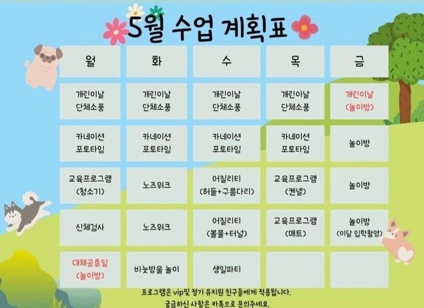 5월 수업 계획표 데로 월~목까지 개린이날 단체 소풍날ㅋㅋ