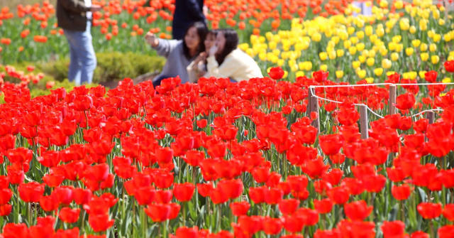 0 공원에는 약 6만 5000구의 튤립이 심어져 있으며 빨간색, 노란색, 분홍색, 보라색 등 색깔별로 구획이 나누어져 있어 무지개 꽃밭 같은 느낌을 준다.튤립 정원은 벚꽃이 지기 시작할 무렵인 4월 초중순에 가장 화려한 모습을 띤다.