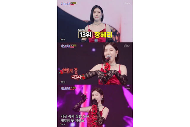 0 장혜리는 오늘도 비장의 무기를 준비했다며 맨발 투혼을 선보였다.그녀는 '정열의 꽃'을 선곡했다. 그녀는 리듬에 맞춰 매혹적인 손짓과 함께 관객들을 사로잡았다. 장혜리의 완벽한 무대 퍼포먼스에 심사위원들도 빠져들었다.장혜리는 가성도 무사히 소화하며 모두의 눈과 귀를 사로잡았다.