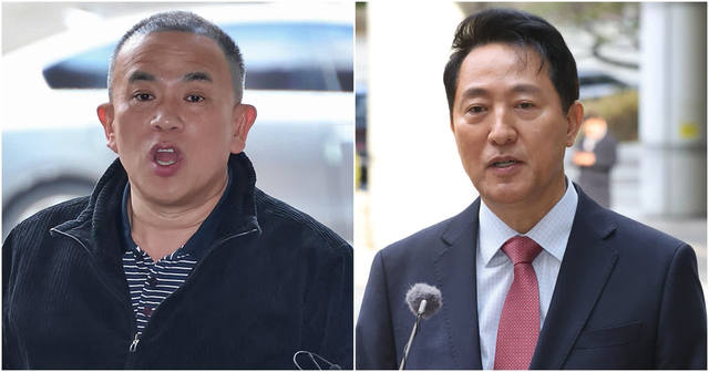 0 오세훈 서울시장과 명태균 씨 / 뉴스1 여론조사 대납 의혹으로 재판을 받는 오세훈 서울시장과 증인으로 나온 명태균 씨가 20일 법정에서 처음 만나 치열한 공방을 벌였다.서울중앙지법 형사합의22부는 20일 오 시장과 강철원 전 서울시 정무부시장, 그리고 사업가 김한정이 정치자금법을 어긴 혐의에 대한 재판을 열었다.두 사람이 직접 얼굴을 마주한 것은 지난해 11월 특별검사팀의 조사 이후 4개월 만이다.명 씨는 지난 18일에도 재판에 나올 예정이었으나 기차를 놓쳤다는 이유로 나오지 않았다.