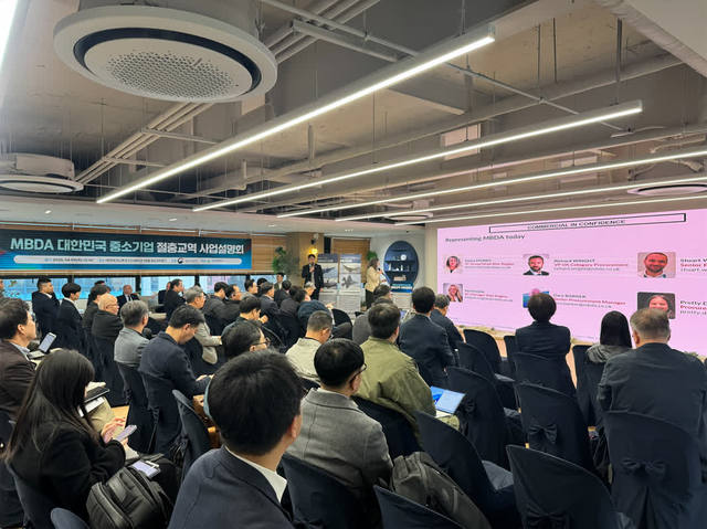 0 / 방위사업청 제공- 방위사업청, MBDA사 절충교역 사업설명회 개최- 90여 개 국내 중소기업, 국제 방산 공급망 참여 기회 모색방위사업청(청장 이용철)은 9일 대전테크노파크 디스테이션에서 영국 방산기업 MBDA와 국내 중소기업 간 산업 협력을 위해 절충교역 사업설명회를 개최하였습니다.