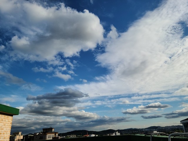 월요일 비가 진짜 많이 오더니 다음날 오후 하늘 이에요 우리집주변은 동그랗게 맑고 해가 나는데 주변은 먹구름으로 가득아~~폰카메라가 많이 발전했네요
