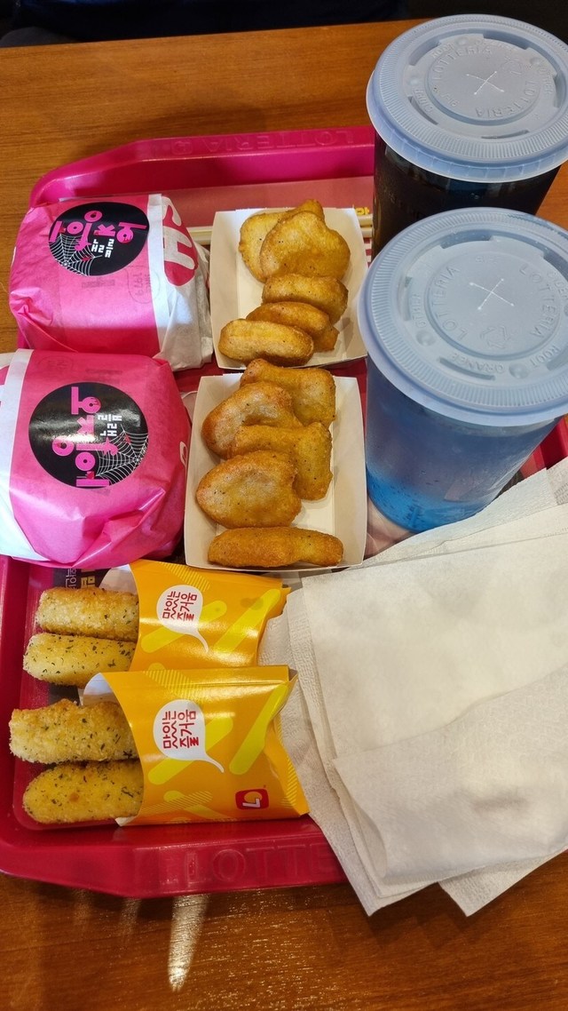 오늘 점심은 롯데리아 햄버억!!!!했어요 ㅎㅎ 생각보다 다른 햄버거에 비하면 너무 매콤해서 놀람🤪근데 맛있었다는고 세트로 시켰는데 푸짐하더군용 힛