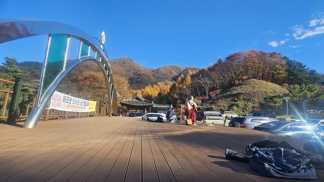 가을을 배경으로 낭만 버스킹하시는 중년의 여인ㆍ박인희의 끝이없는길이 흘러나오니 같이 흥얼거려봅니다 ^^
