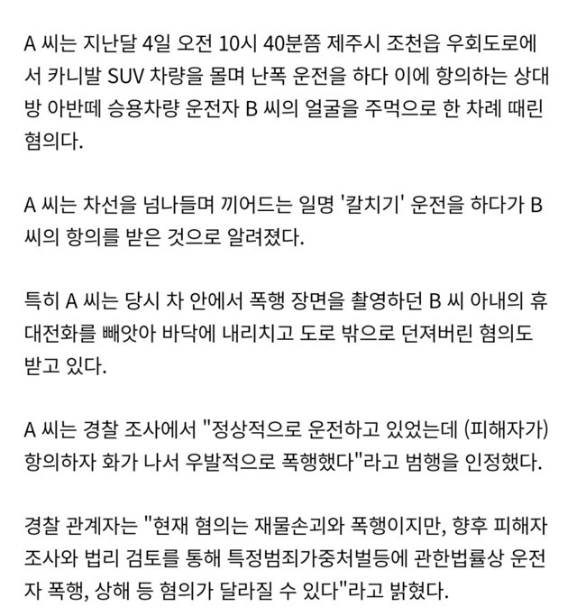 카니발 폭행 운전자, "칼치기 항의해서 폭행했다"
