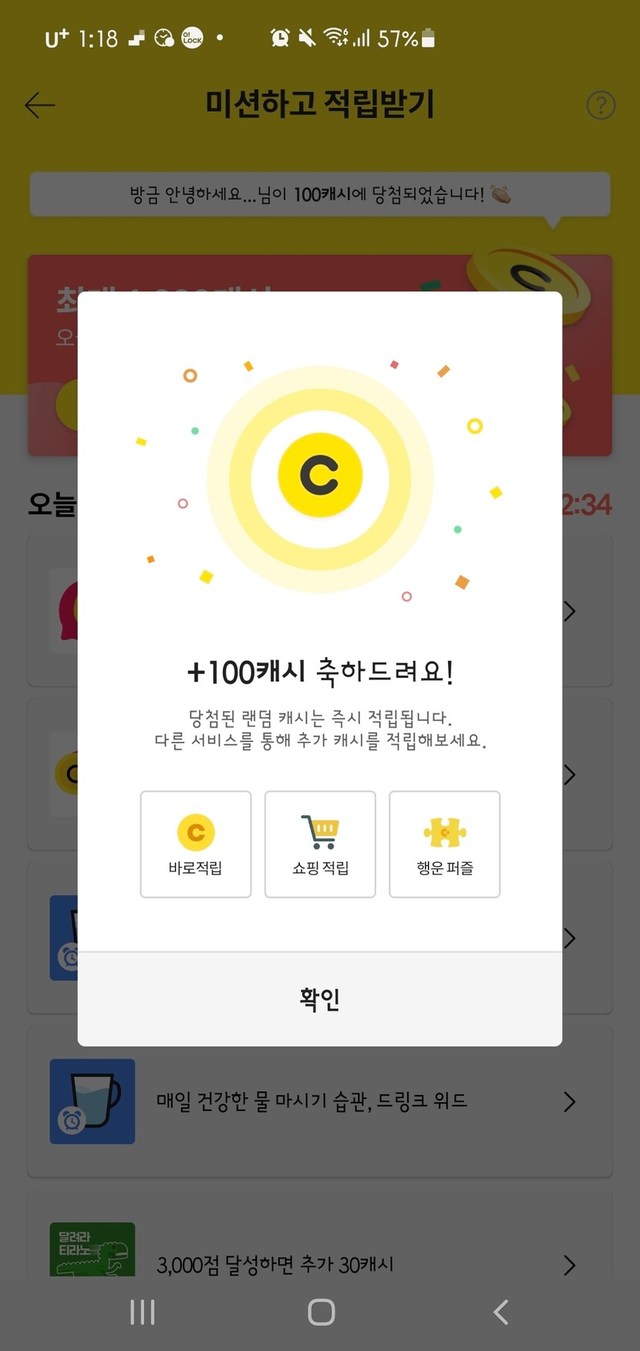 어제 받은 100캐시~