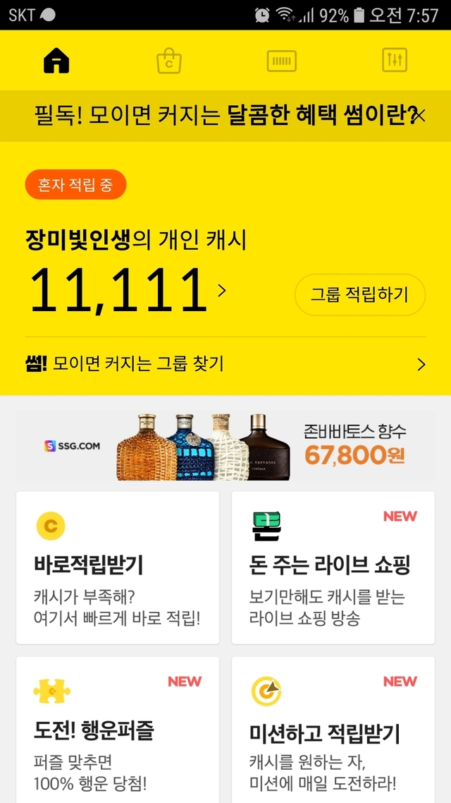 미션 15캐시 받았어요~~
