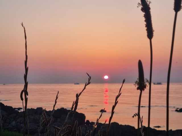 부산 바닷가에서 일출