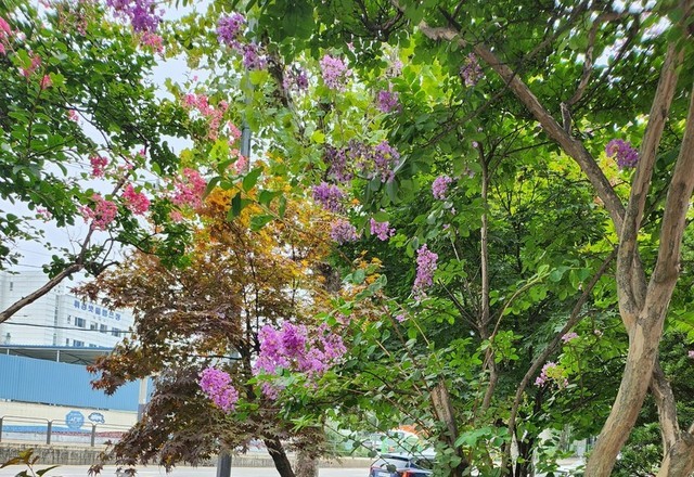 핸드폰에 이상이 생겨 쎈터에 들렀다문제 해결 한 뒤공원 길로 걸어 오다가배롱나무 아름다운 꽃 그늘 아래에잠시 쉬었다 주위를 둘러보니참 하늘도 맑고 공기도 좋네요요 며칠 변덕스런 날씨에비가 오다가 또 찌는듯이 덥다가.며칠 정신없었는데매미 소리와 함께청량함을 느껴 봅니다예쁘고 수줍은 시골 아낙 같은꽃이 참 곱네요