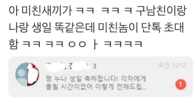 구남친이랑 생일 똑같은데 동생놈이