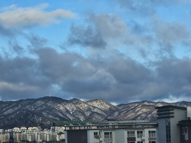 올해 흰 눈이 내린 날에 앞산 남한산성의 자태가 정말 한폭의 그림과 같습니다.
