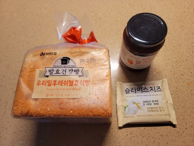 접니다.굿밤되고 계시죠? ㅎ오늘 정말 추웠죠 ㅜㅜ 감기 조심요.저도 간만에 차로 출퇴근하고 간단히 장봐왔습니다.그리고 이것도 주섬주섬 꺼냅니다 ㅎㅎ귀여운 녀석 등장~간만에 꺼내봐요 ㅎ일단 프라이부터!그 사이 식빵에 딸기쨈 바르고,치즈 툭툭!프라이 올리고~달궈진 틀에 꾹꾹이~~~따라~^^모양이 잘 나왔네요.얘는 좀 옅게 ㅎㅎ~오늘 이상하게 이게 당겼음~챱챱~맛나네요!근데 목이 좀 마르네요.역시 여기에 탄산수는 아니지~이제 목마름이 좀 가시네요. 마실 게 있어야합죠 ㅎㅎ낼도 춥답니다. 건강 잘 관리하세요~굿밤!!!