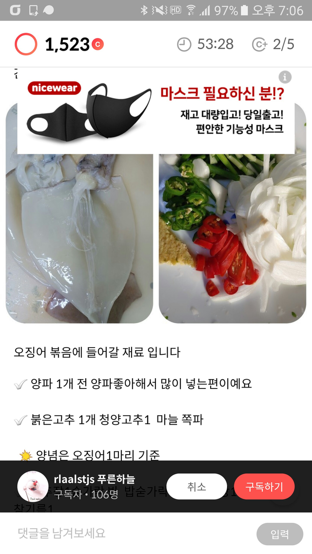 남의 집 식단을 훔쳤습니다.저희도 저녁 메뉴로 오징어입니다.실례 되는 줄 압니다민 그림 도용했습니다.지금이 제 철인지그냥 그 맛이 목에 솔솔 잠깁니다.누구의 솜씨리고 굳이 안내 않으셔도 됩니다.음식 재료