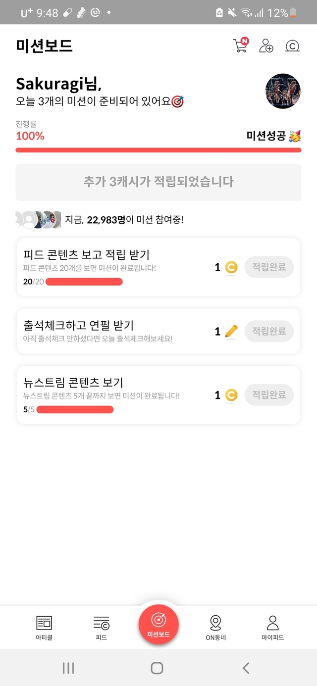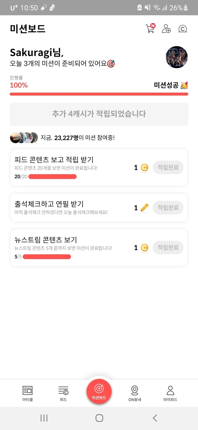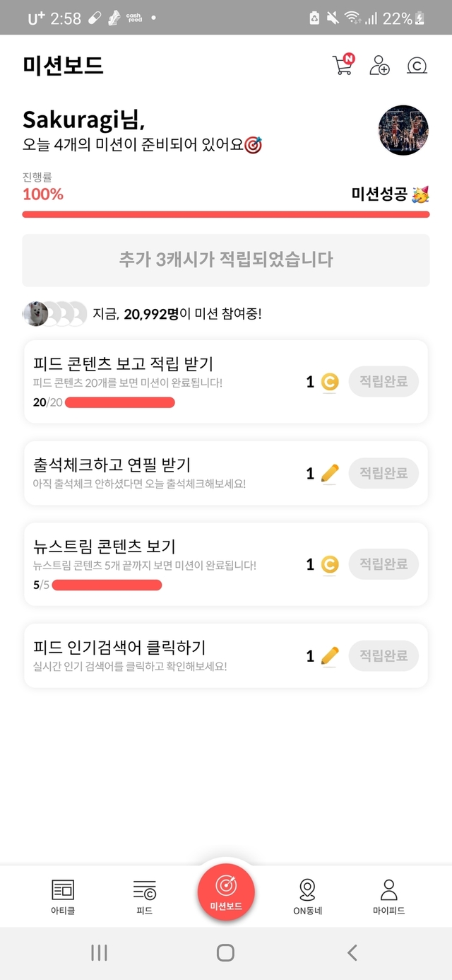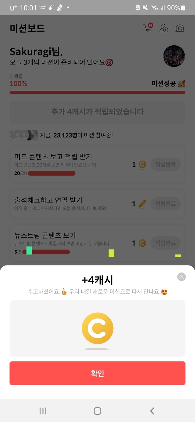 오늘도 미션 성공 했습니다 ㅎㅎ