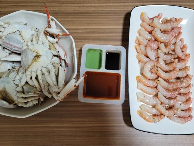 오늘은 꽃게랑 새우 먹엇어요