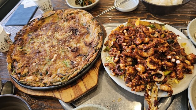 점심에 불향나는 낙지볶음♡해물가득 파전♡