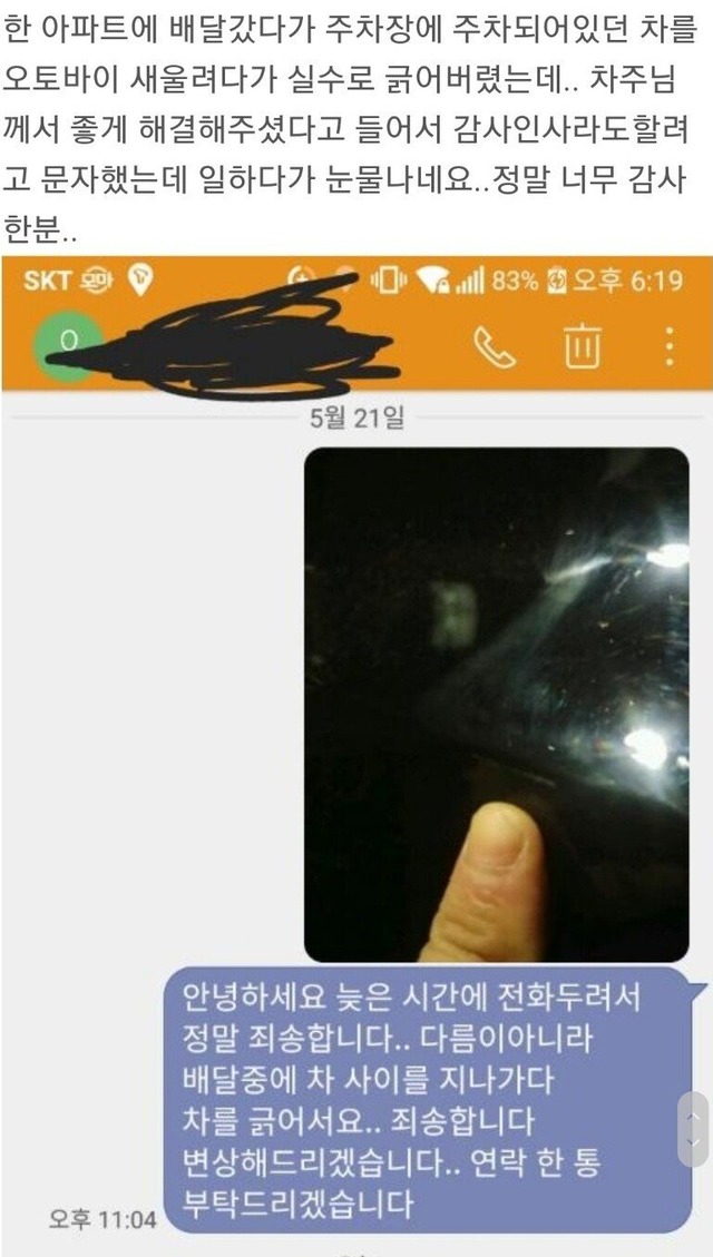 감동주의) 배달가다 사고났는데..