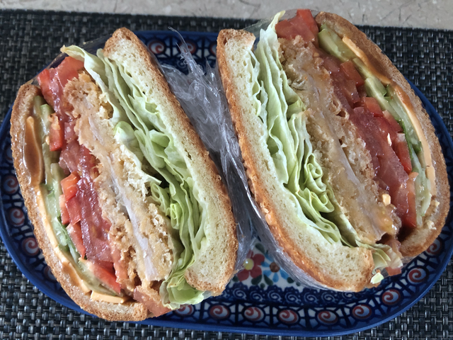 돈까스 샌드위치 만들었어요~밖에서 파는 샌드위치 못지않네요양상추 많이넣고 토마토, 파프리카 등등건강하고 맛있는 샌드위치~~^^