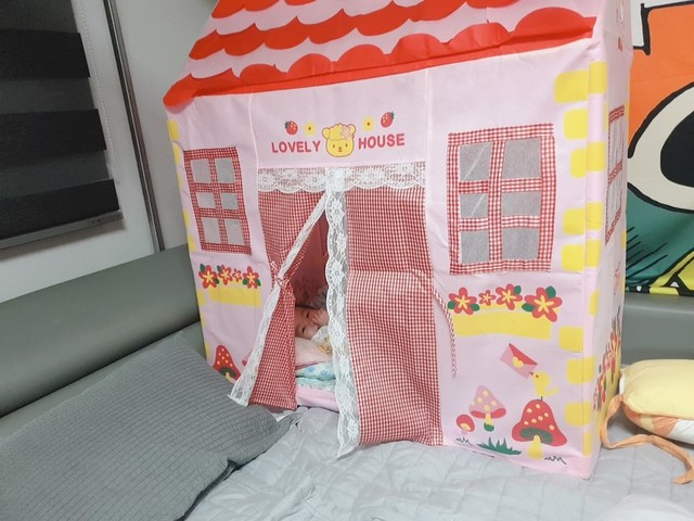 조카 선물로 텐트하나 선물해줬더니 이렇게나 좋아하네요ㅎ저기 들어가고는잠도 저기서 잔다고하네요ㅎㅎ귀여워죽겠네요ㅎㅎ안샀으면 어쩔뻔~^^