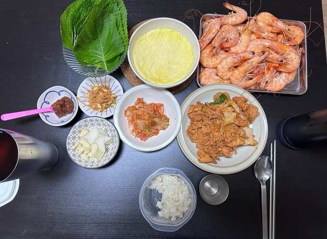 야구 경기 끝나고서 저녁 먹는 중입니다