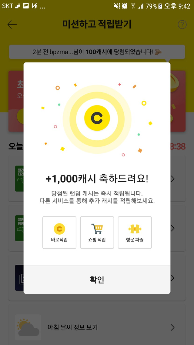 1000캐시!100캐시는 몇 번 당첨 경험 있는데 1000캐시는 처음이네요.