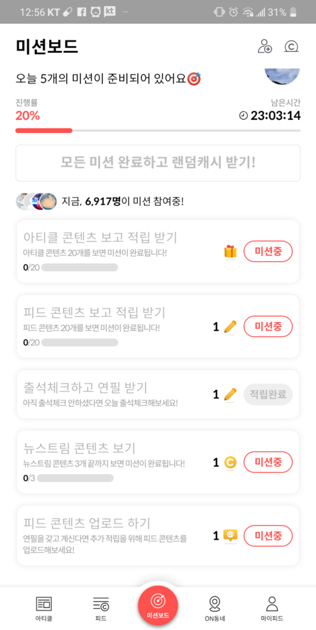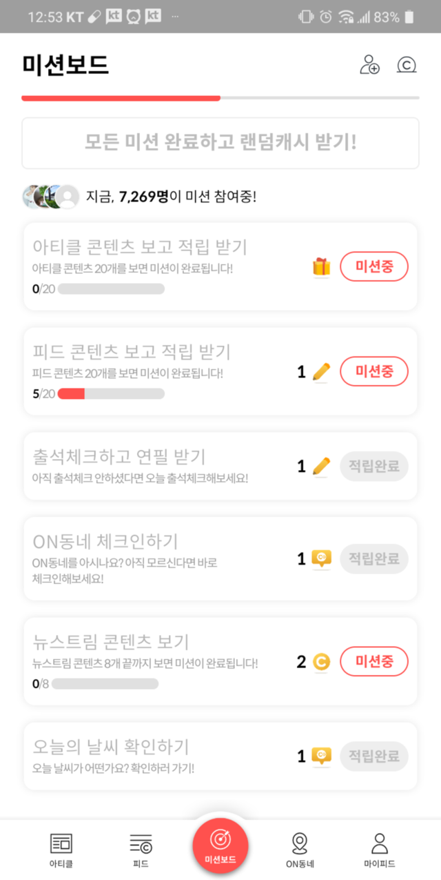 오늘의 미션 시작