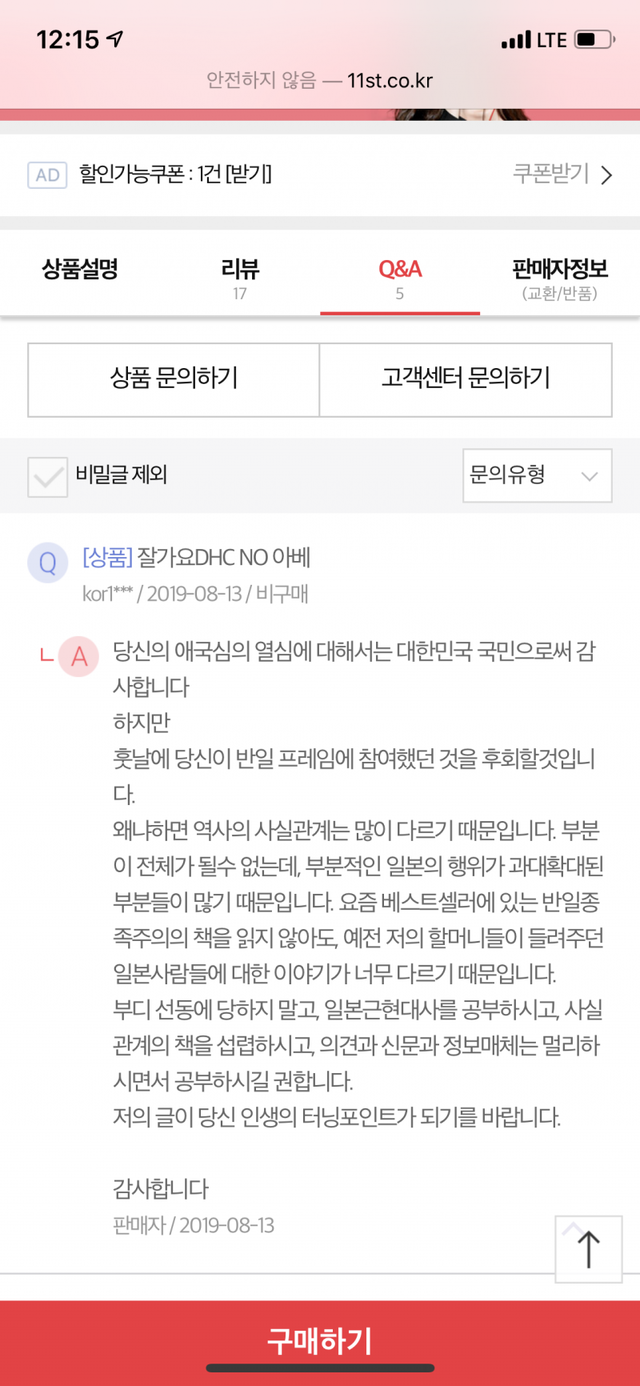 DHC 판매자 문의글 상태가...?