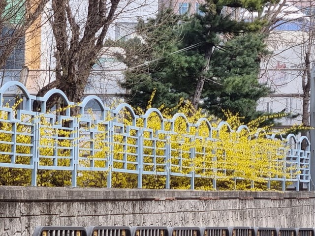 꽃샘추위에도 개나리는 피엏네요