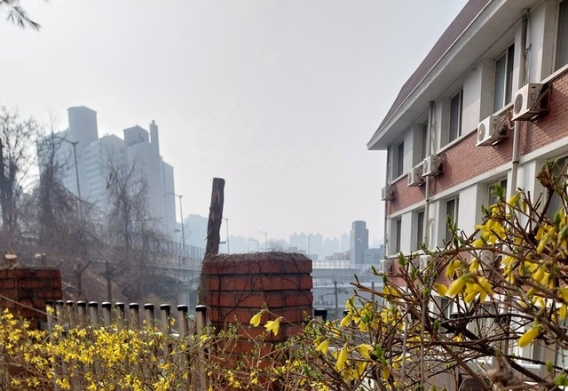 아파트에도 개나리가 활짝