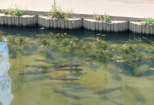 하천에 잉어떼가