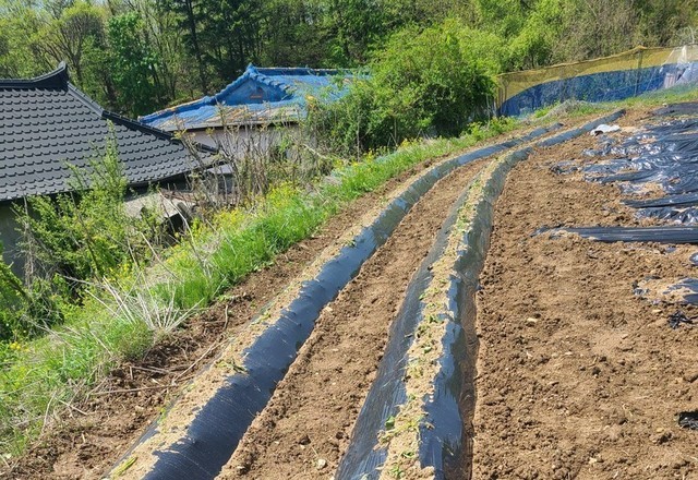 고구마 밭 비닐 멀칭하기