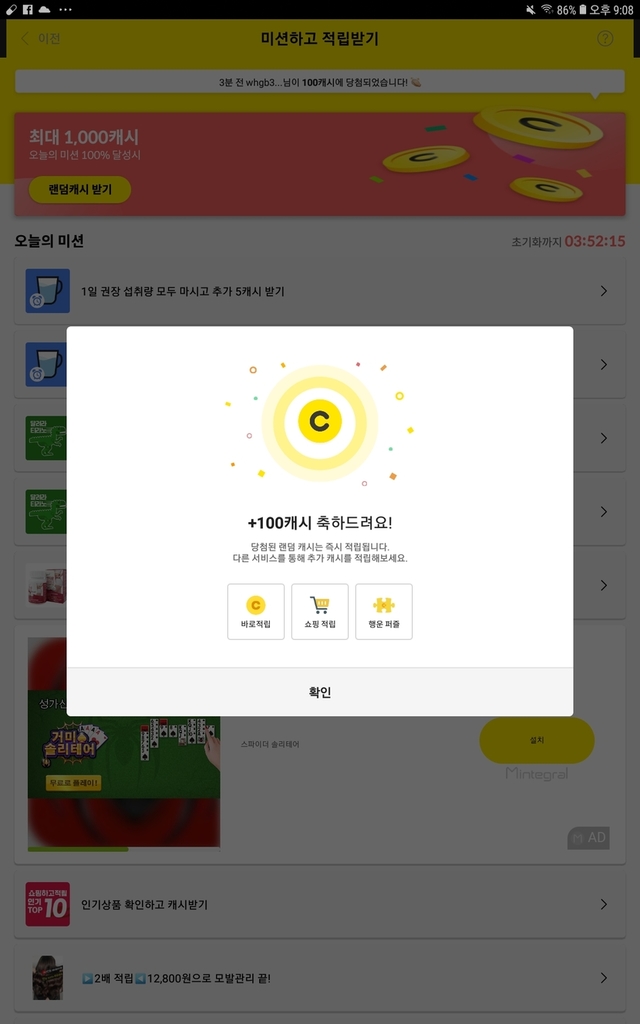 100캐쉬 받았어요.