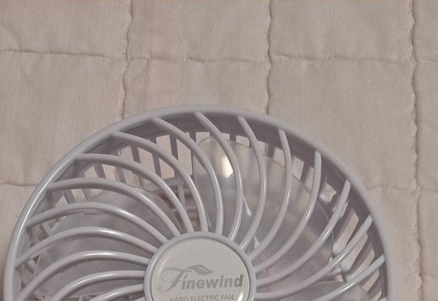 야외에서. 손 선풍기.