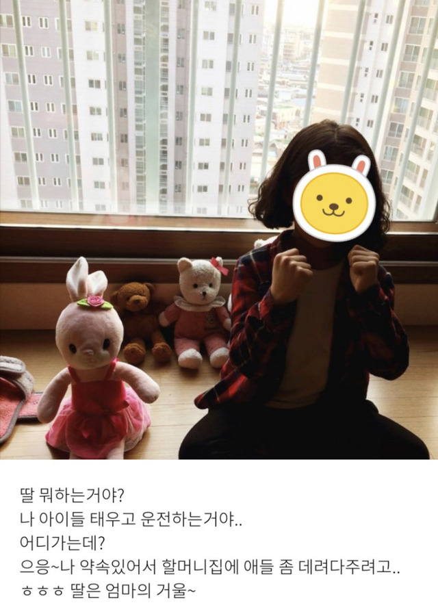 친정이 가까이 있는덕에약속이 있을때 딸을 할머니집에 편하게 맡기곤 했는데.. ㅋ어느날 인형놀이하는 딸이 하는말을 유심히 들어보니이렇게 엄마를 흉내내고 있네요..제 거울 맞습니다!!