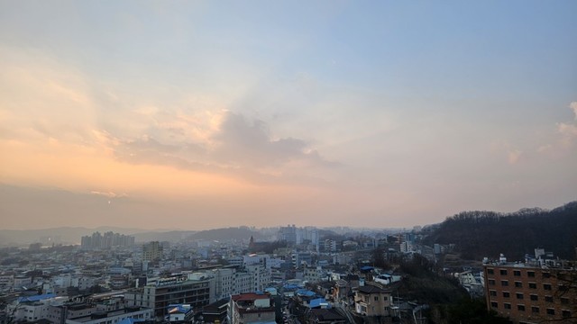 산불로 인한 연기로 가득찬 도시