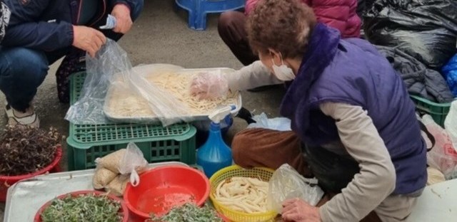 칼국수 직접 밀어와서 판매하시는 할머님들~외할머니 생각난다며 꼭사야한다는 울엄마ㅎㅎ