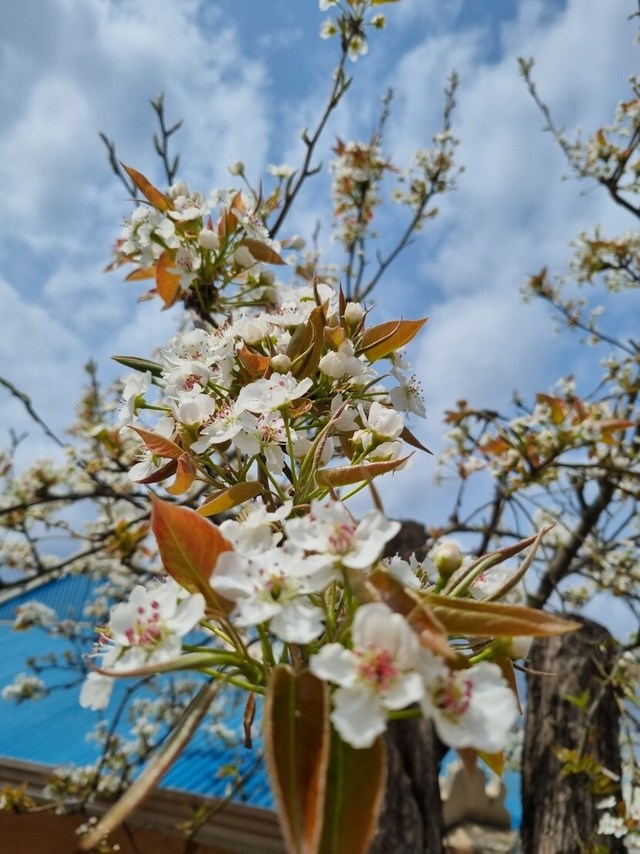 새하얀 돌배꽃과 눈이즐거운 꽃잔디~^^