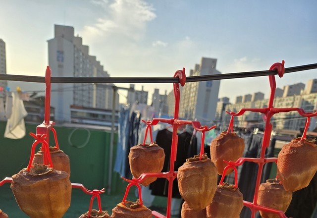 대봉시 깍아서 옥상에 널었어요맛있는 곶감만들어볼께요