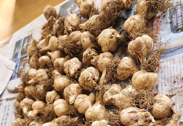 엄니가주신 마늘 흙이넘많아 손질해서 건조중
