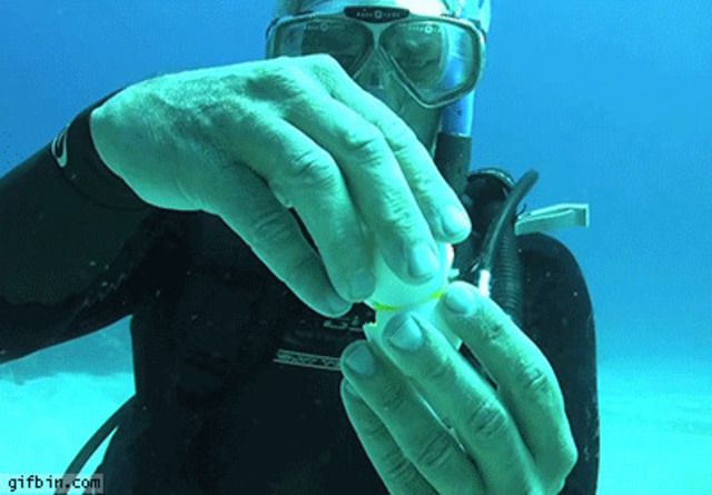 바다 속에서 날달걀 까보기.gif