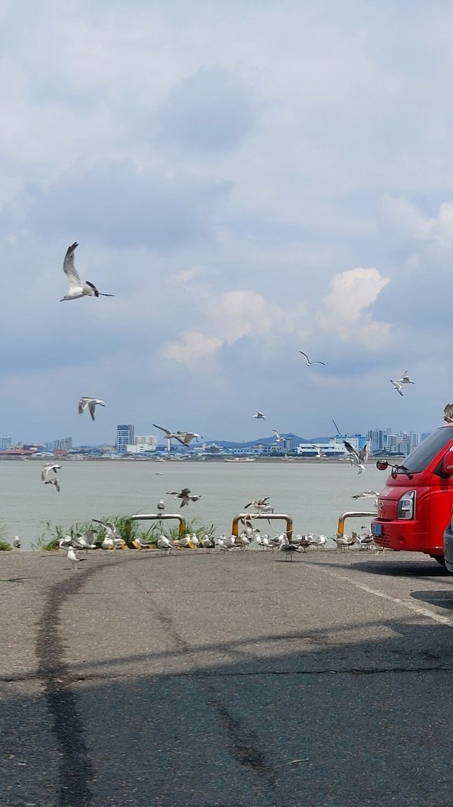 수산물센타 쪽 구경 갔다가 갈매기떼 출현~