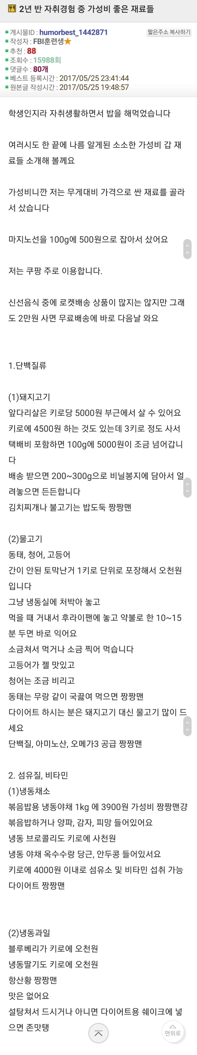2년 반 자취경험 중 가성비 좋은 재료들
