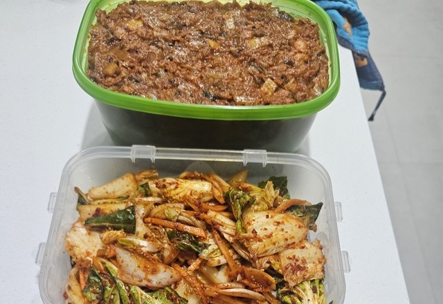 봄동알배추 겉절이오이양배추무침햄참치김치볶음밥두부조림~~아이들이 아침마다 김치볶음밥을 해달래서 두쪽 썰어서 햄,참치넣어 미리 잔뜩 볶아놨어요^^이렇게 해놓으면 아침엔 크게 한스푼씩 떠넣어 밥만넣고 볶아서 계란프라이 하나 올려주면 간단하더라고요...하다보니 빨간음식만 했네요~~~~ㅎㅎ
