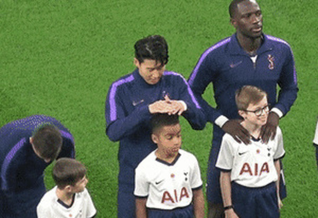 어제 경기전, 꼬마 비 막아주는 손흥민.gif